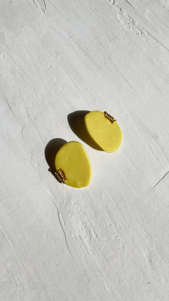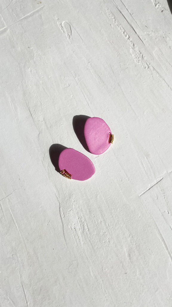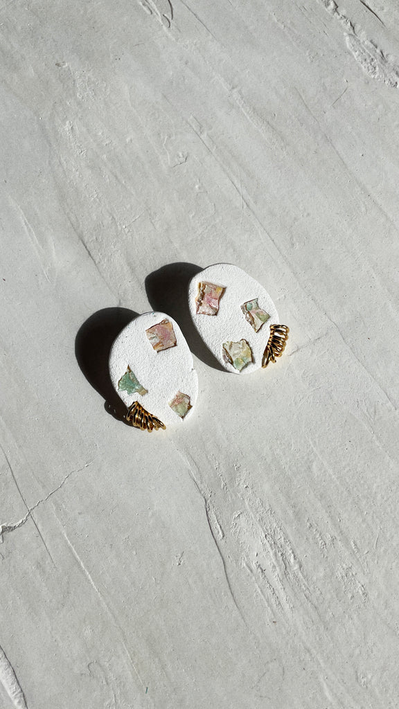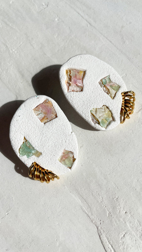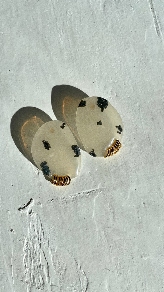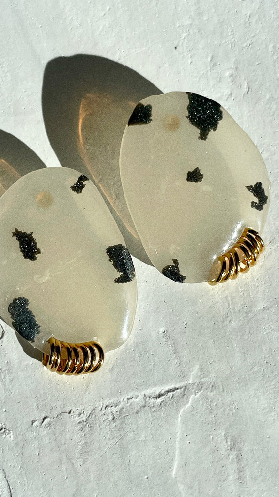 Polymerclay Earrings with 24k gold plated hoops. This design is asymmetrical and they differ between left and right side.