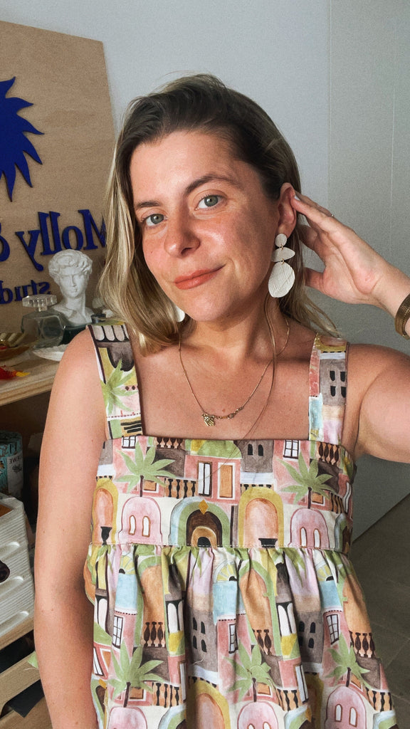 Made with Polymer clay. They are light and resistant but please treat with care since they are unique and handmade. The metal jumprings and earring posts are nickel-free 24k gold Silver plated.